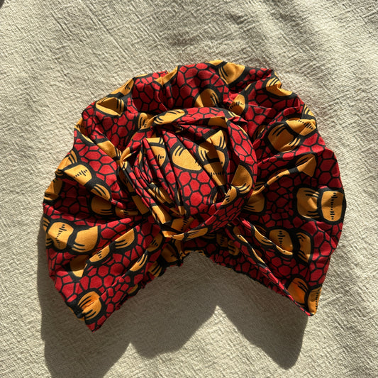 Satin gefütterter Turban rot gelb