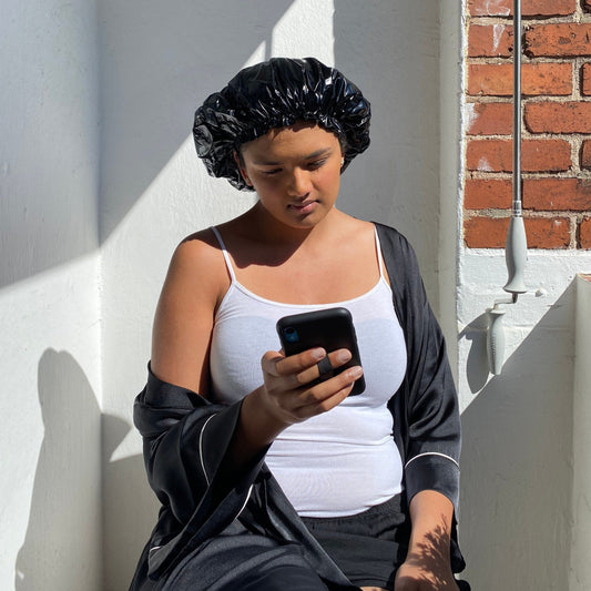 JEN by curly hair care Satin Cap Efia verstellbarer Bund, schwarz