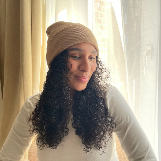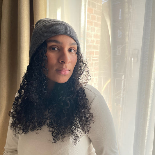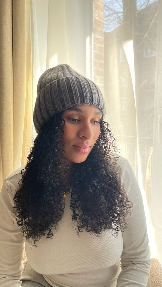 AusverkauftSatin gefütterte Strickmütze dunkelgrau