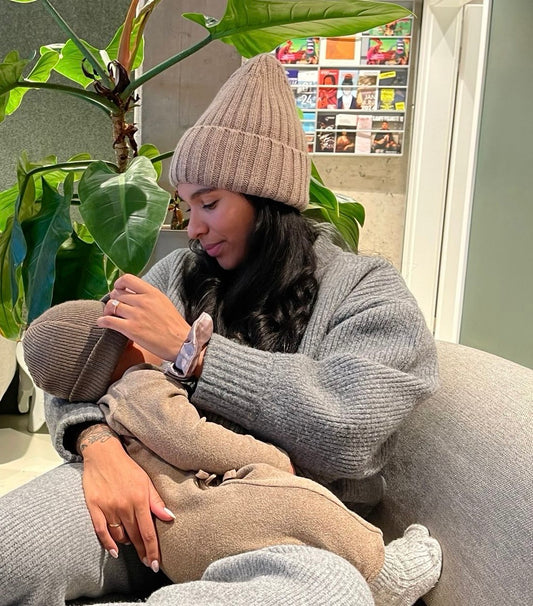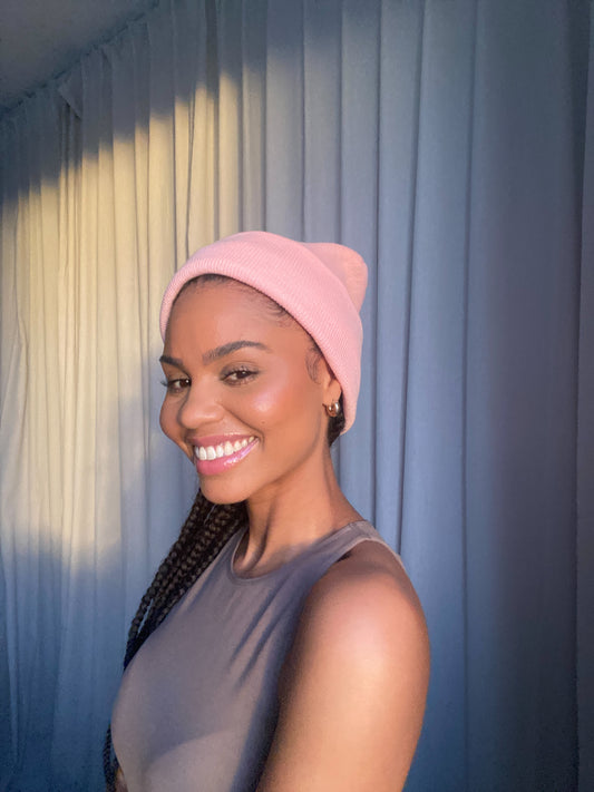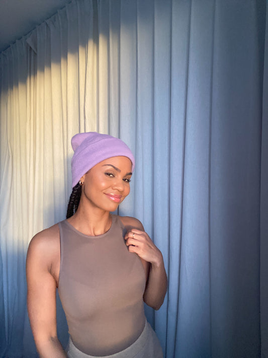 AusverkauftSatin gefütterte Strickmütze hellgrau