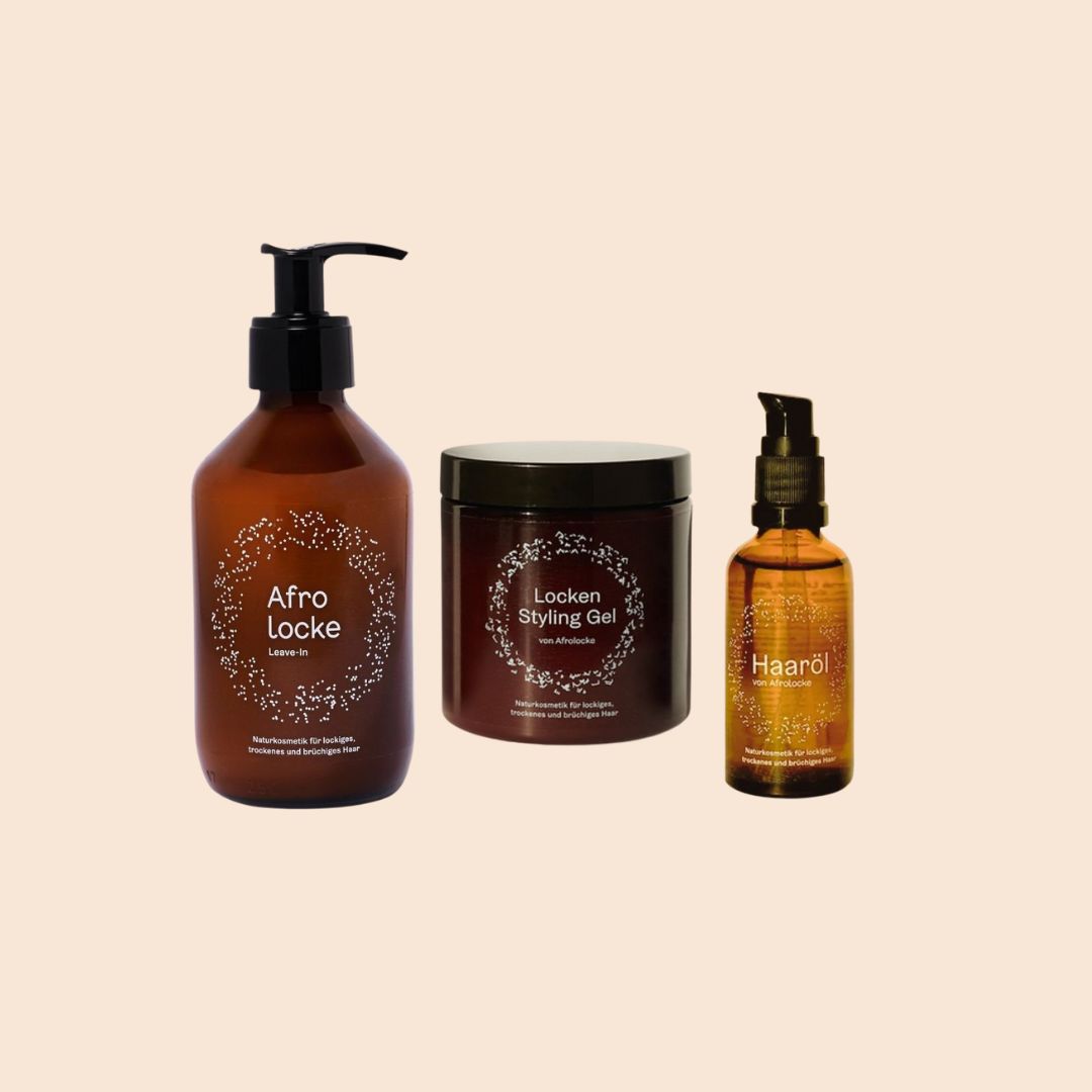 Unser Afrolocke Styling Trio kombiniert drei leistungsstarke Essentials, die jede Locke zum Strahlen bringen: