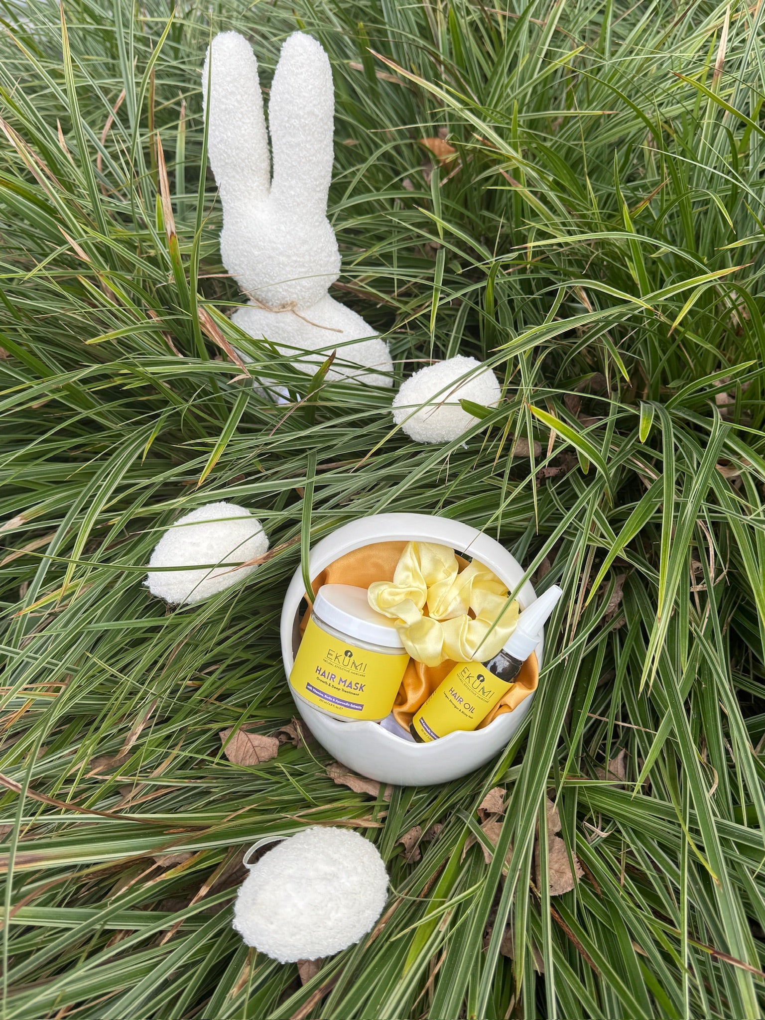 Unser exklusives Oster-Bundle ist die perfekte Gelegenheit, Dir selbst oder einem lieben Menschen eine besondere Auszeit zu schenken – vollgepackt mit liebevoll ausgewählten Essentials für gesunde, glänzende Locken.