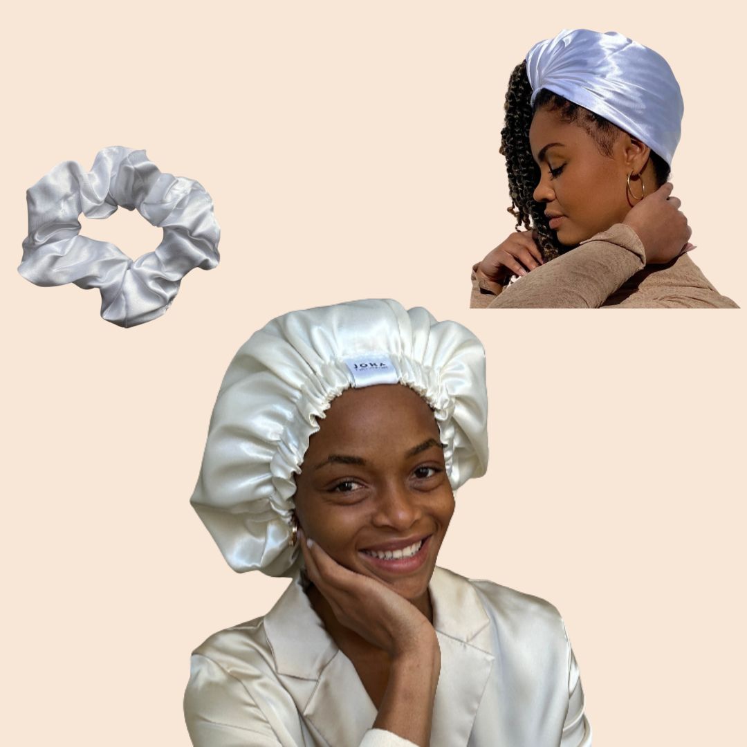 Schütze Deine Haare und verwöhne sie mit unserem neuen Satin Essentials Bundle von JONA curly hair care! Dieses Set vereint drei essentielle Satin-Produkte, die deine Haircare-Routine unmittelbar auf das nächste Level bringen: