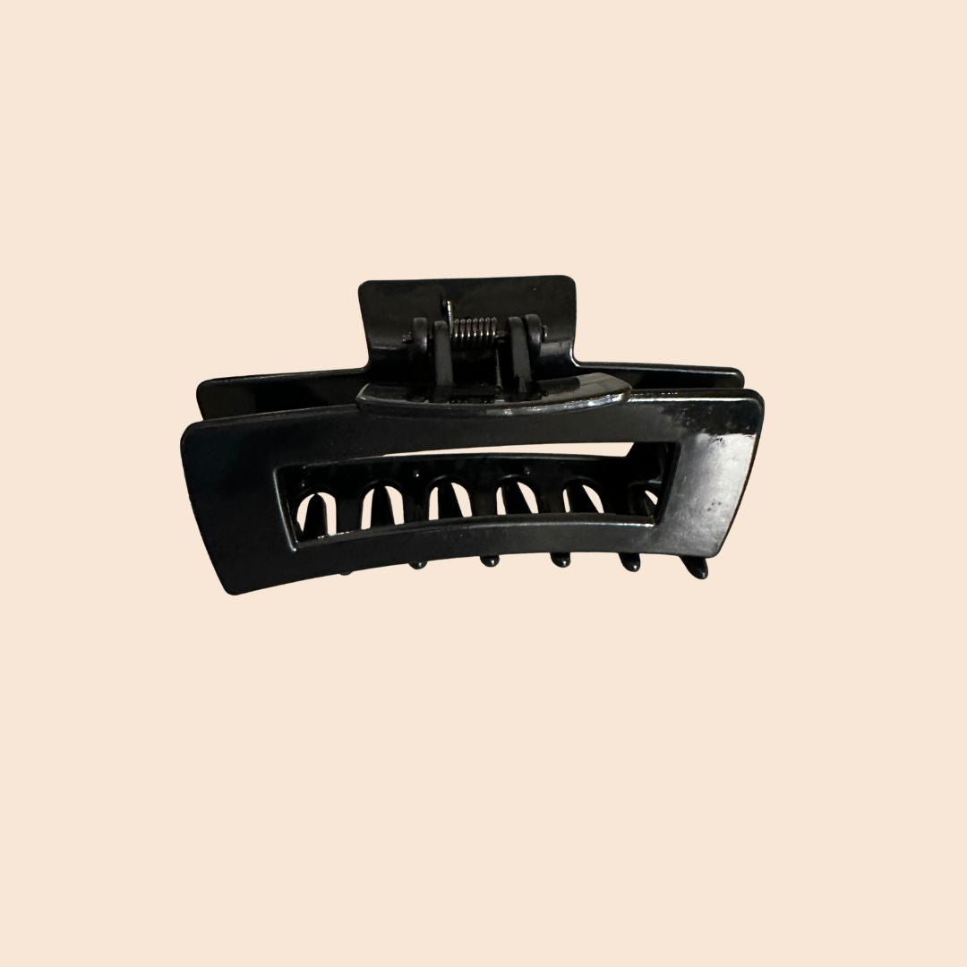 Diese biegsame Haarklammer für jeden Tag hält störende Haare vom Gesicht fern und verhindert Haarbruch, der durch die Verwendung normaler Haargummis entstehen kann. Sie hat einen einfachen Klemmverschluss mit eckigen Zähnen und einen rechteckigen Griff.